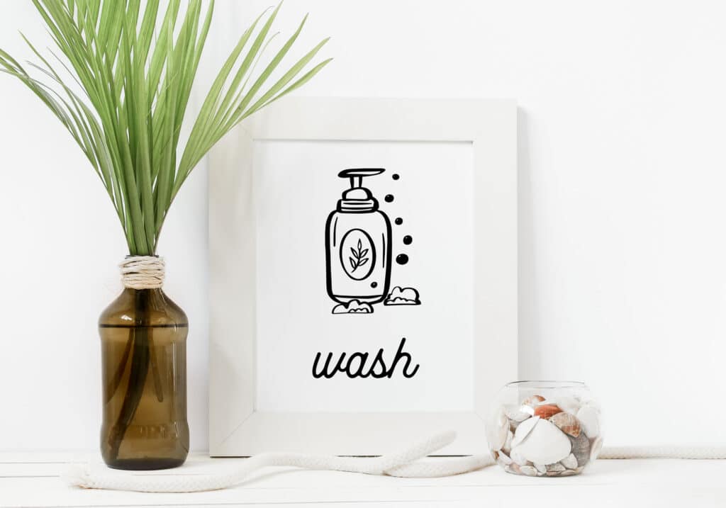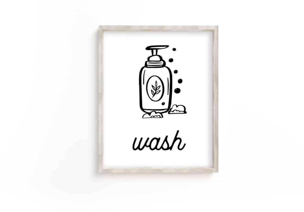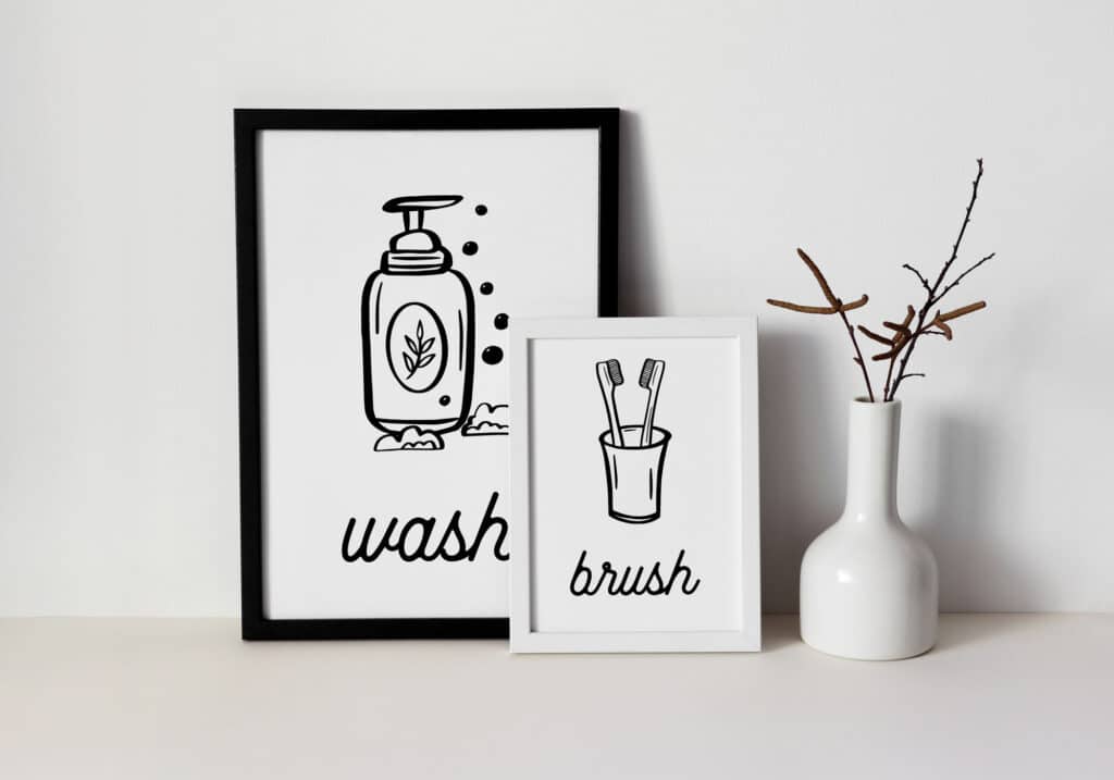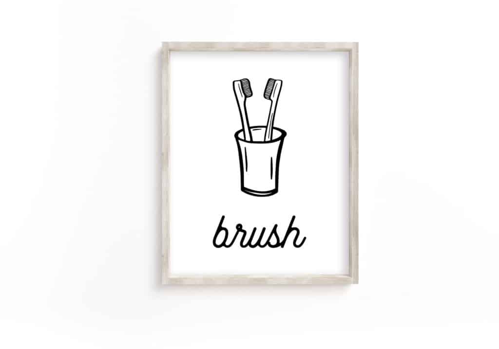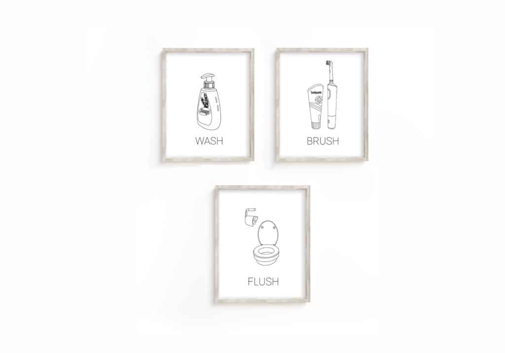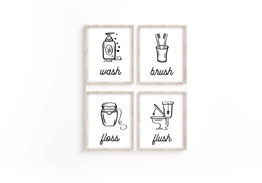 Modern Bathroom Wall Art: Set of 4 Prints – Wash Brush Floss Flush