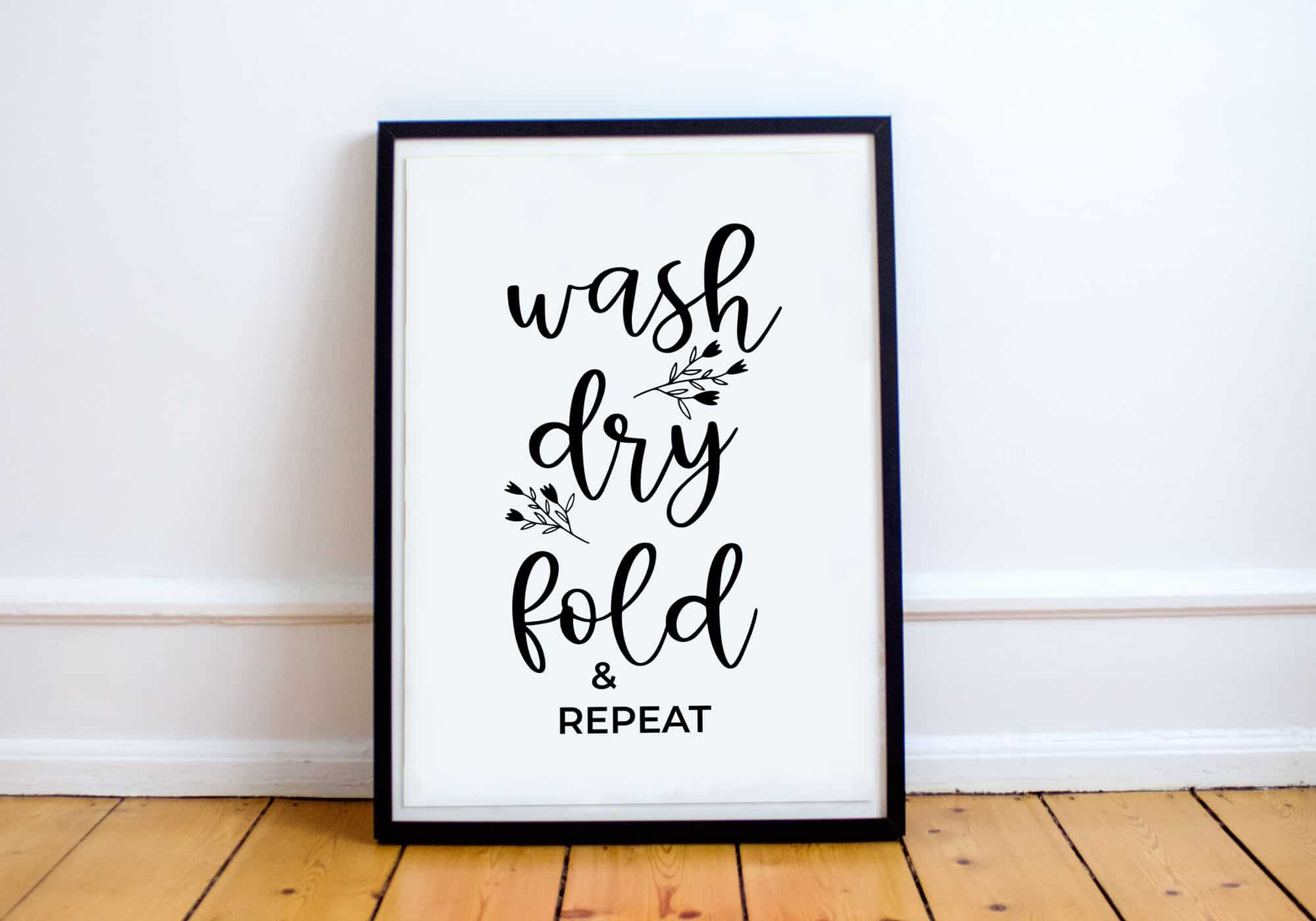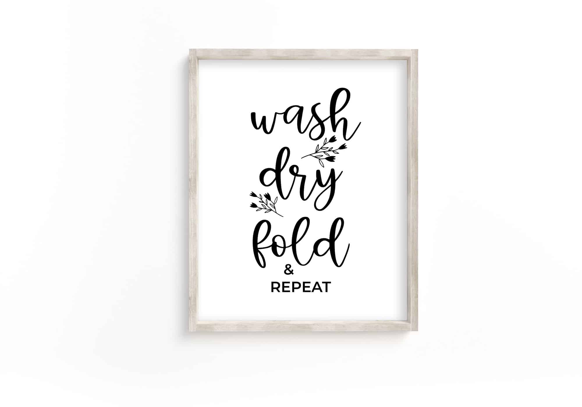 - Elegant Floral Design: Delicate flowers enhance the classic “Wash Dry Fold Repeat” mantra, adding a touch of sophistication to your laundry room.