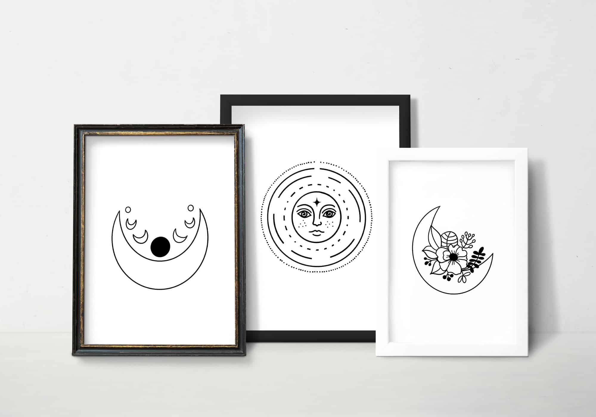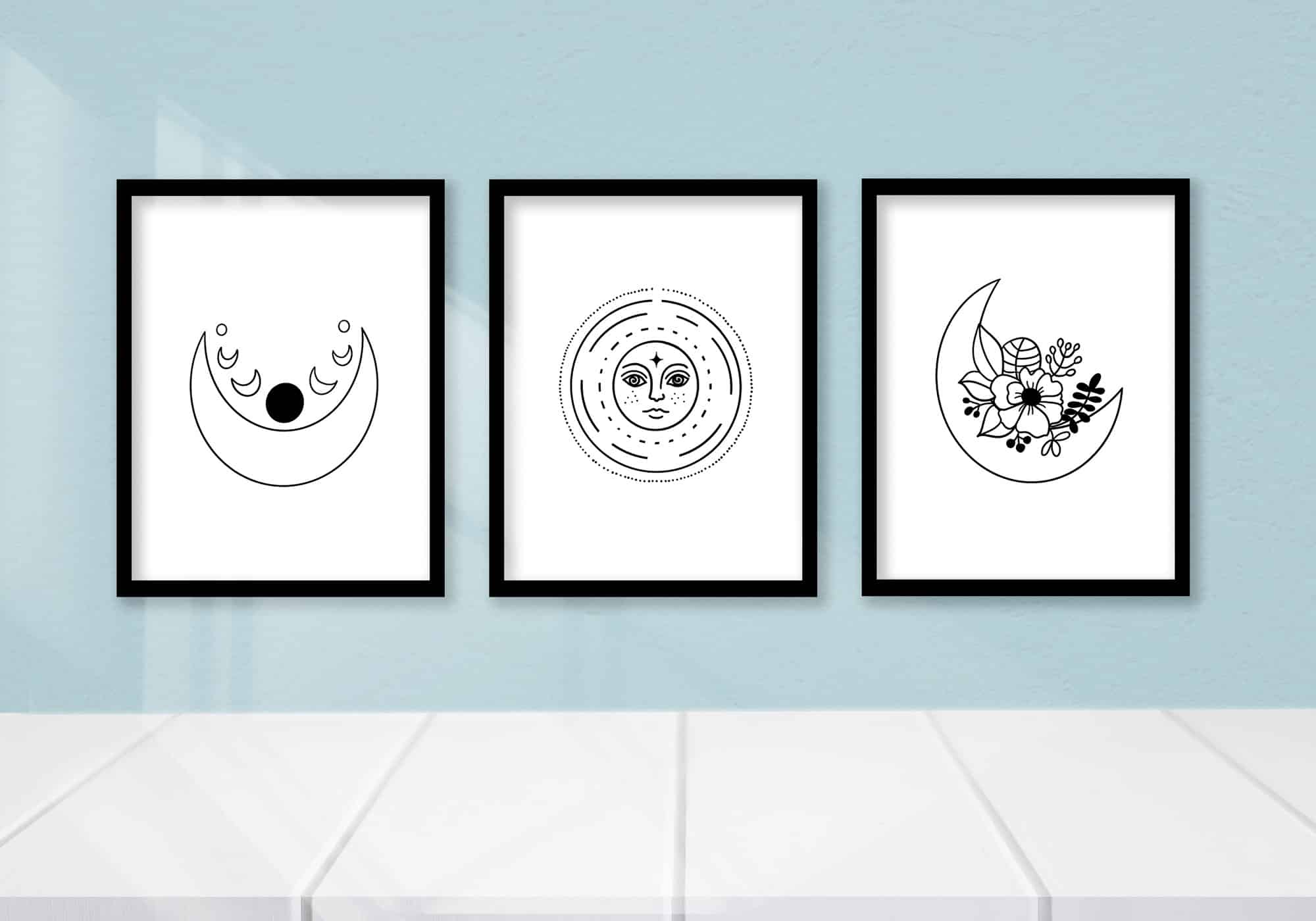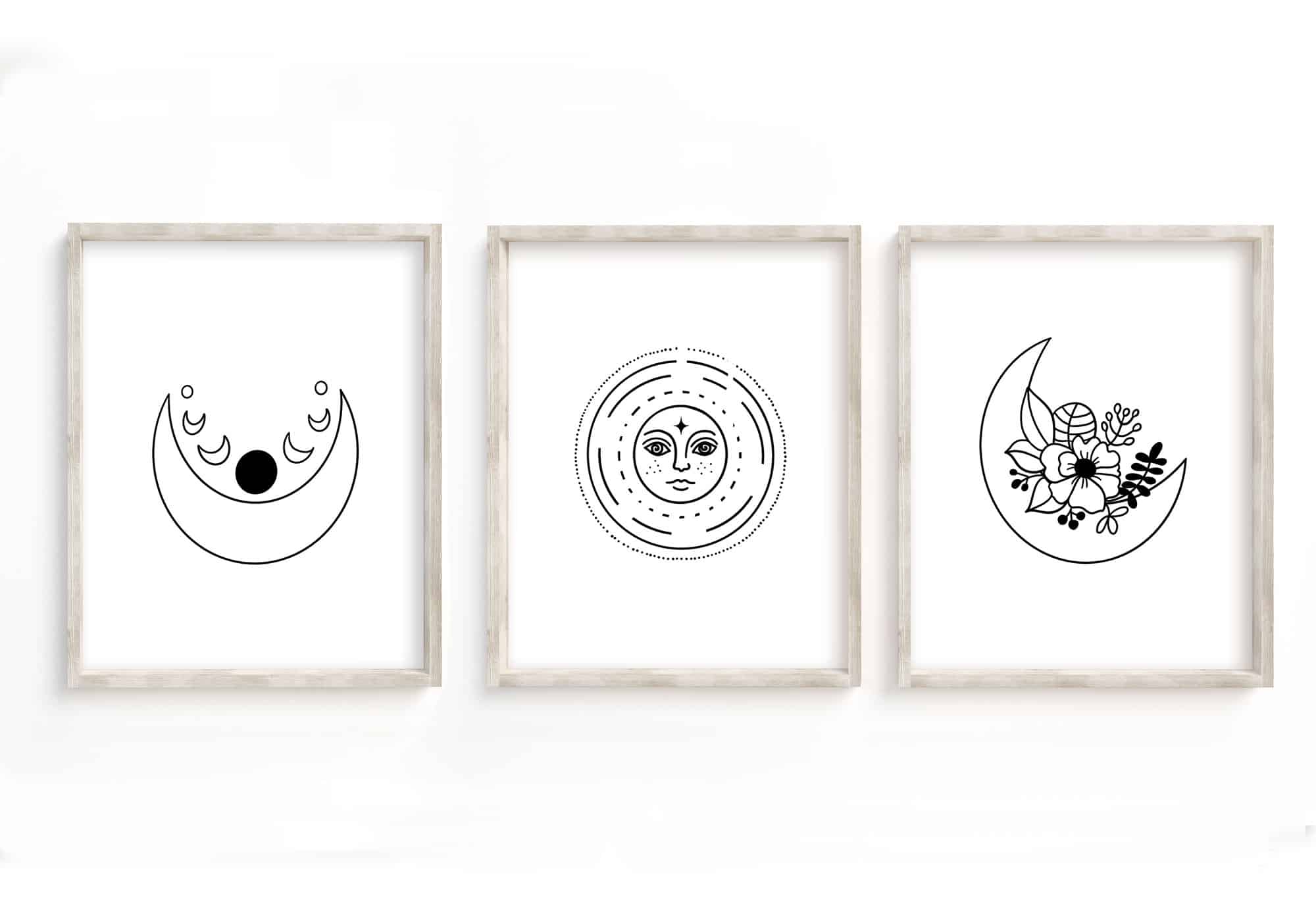 Transform your home with this stunning set of 3 celestial printables, featuring the Flower Moon, Moon Phases, and the Sun. Perfect for adding a touch of mystical and spiritual art to any space, these prints are ideal for celestial-themed decor.
