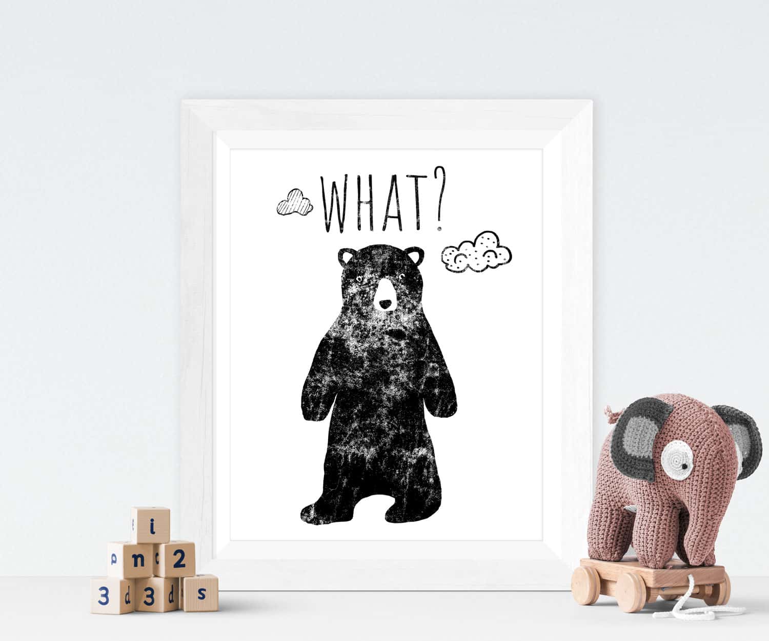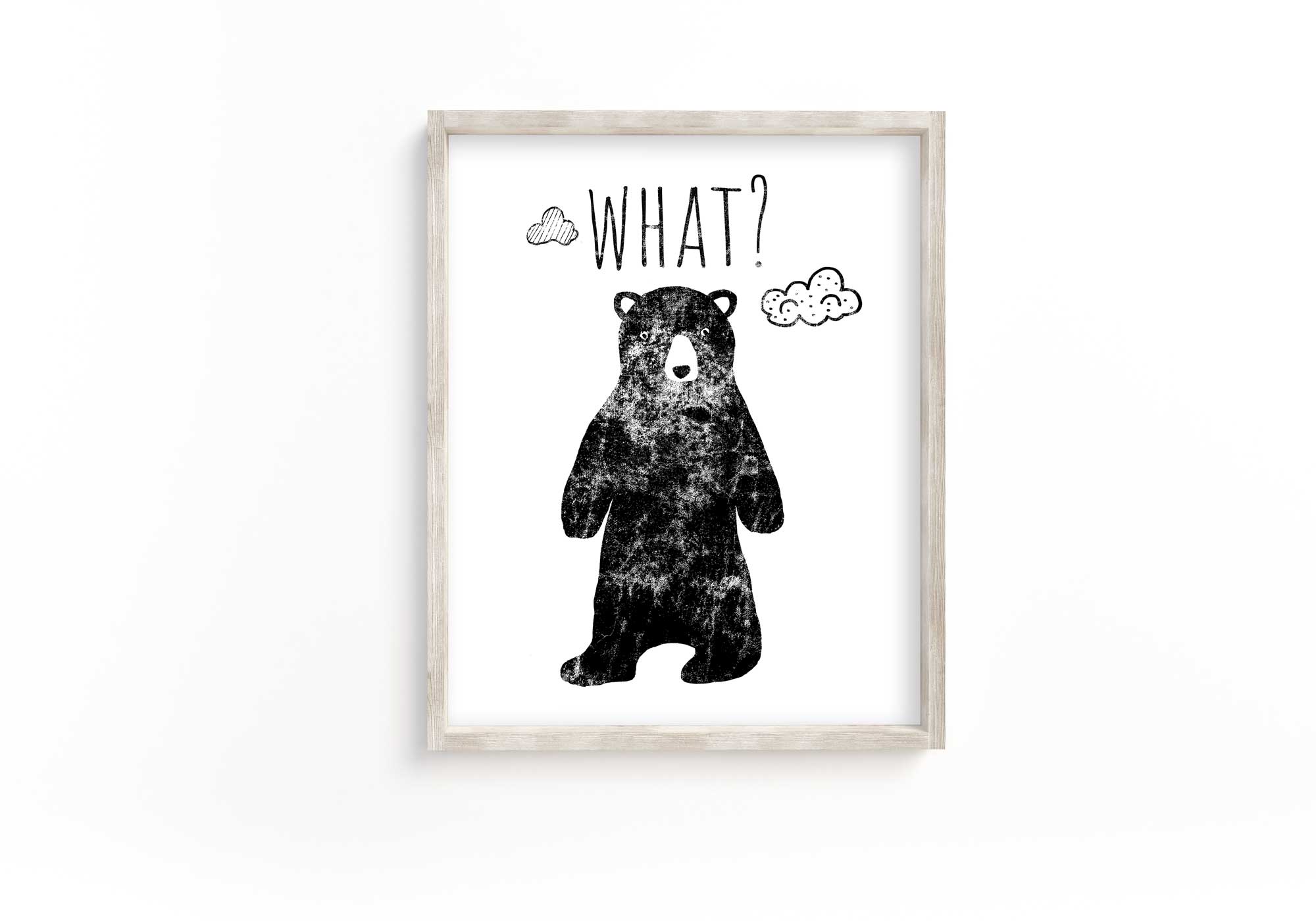 Funny Bear Printable – Hand Painted Illustration for Kids Room Decor