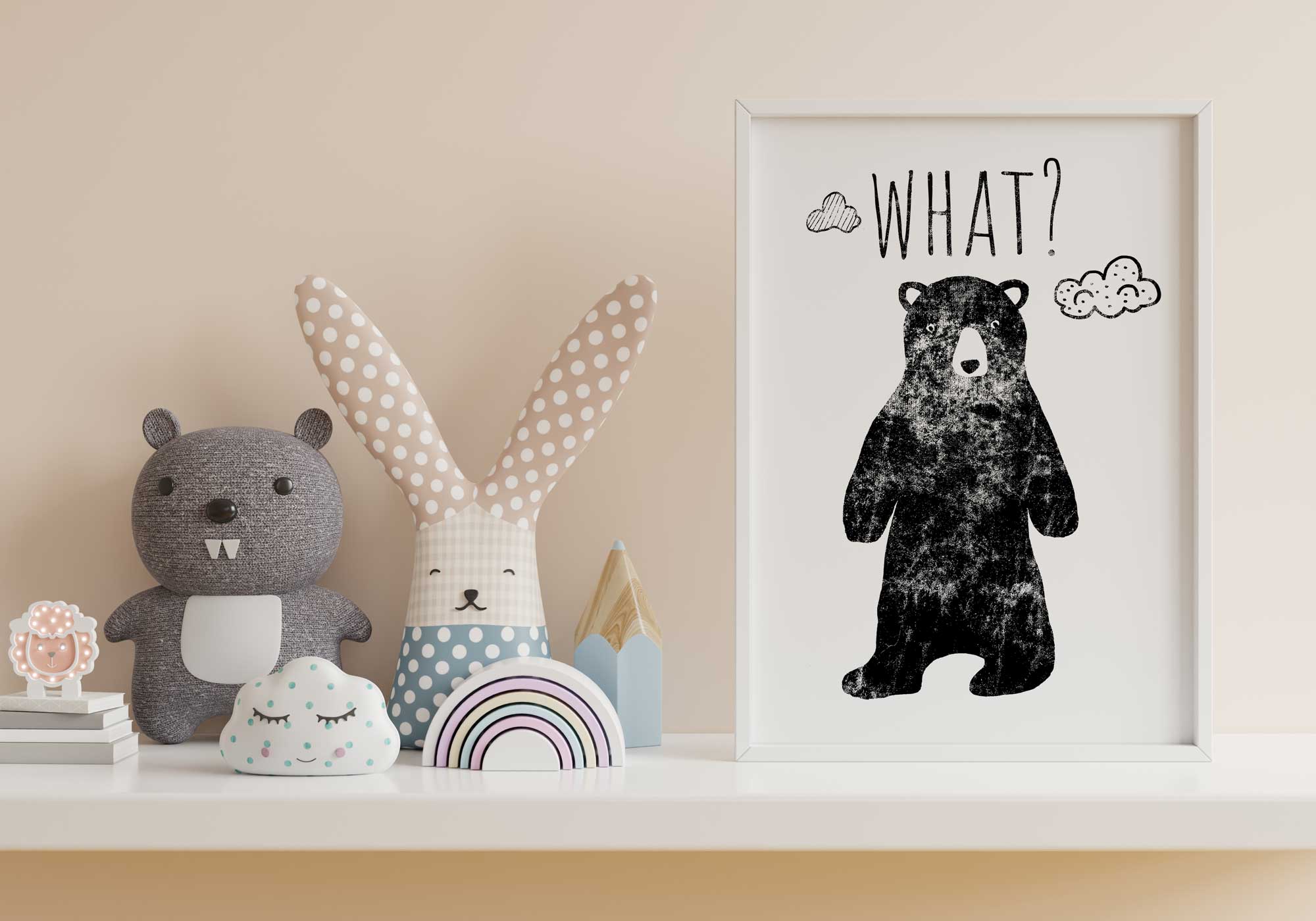 Brighten up your child’s room with our charming Funny Bear Print. This hand-painted illustration is perfect for adding a playful touch to nursery decor or a teenager’s room. With its whimsical design, it brings joy and creativity to any space, making it an ideal piece for kids’ room decor or a delightful gift.