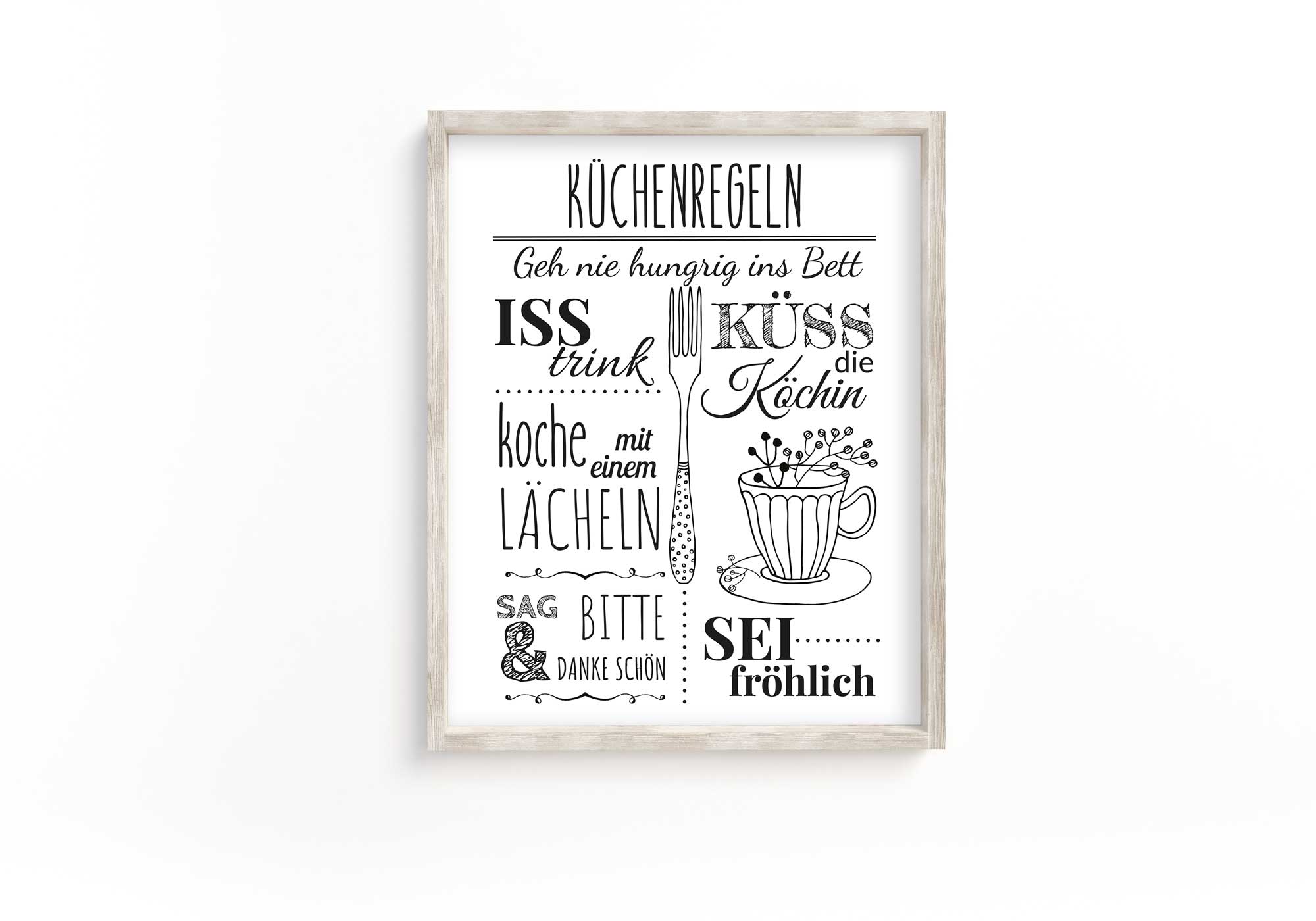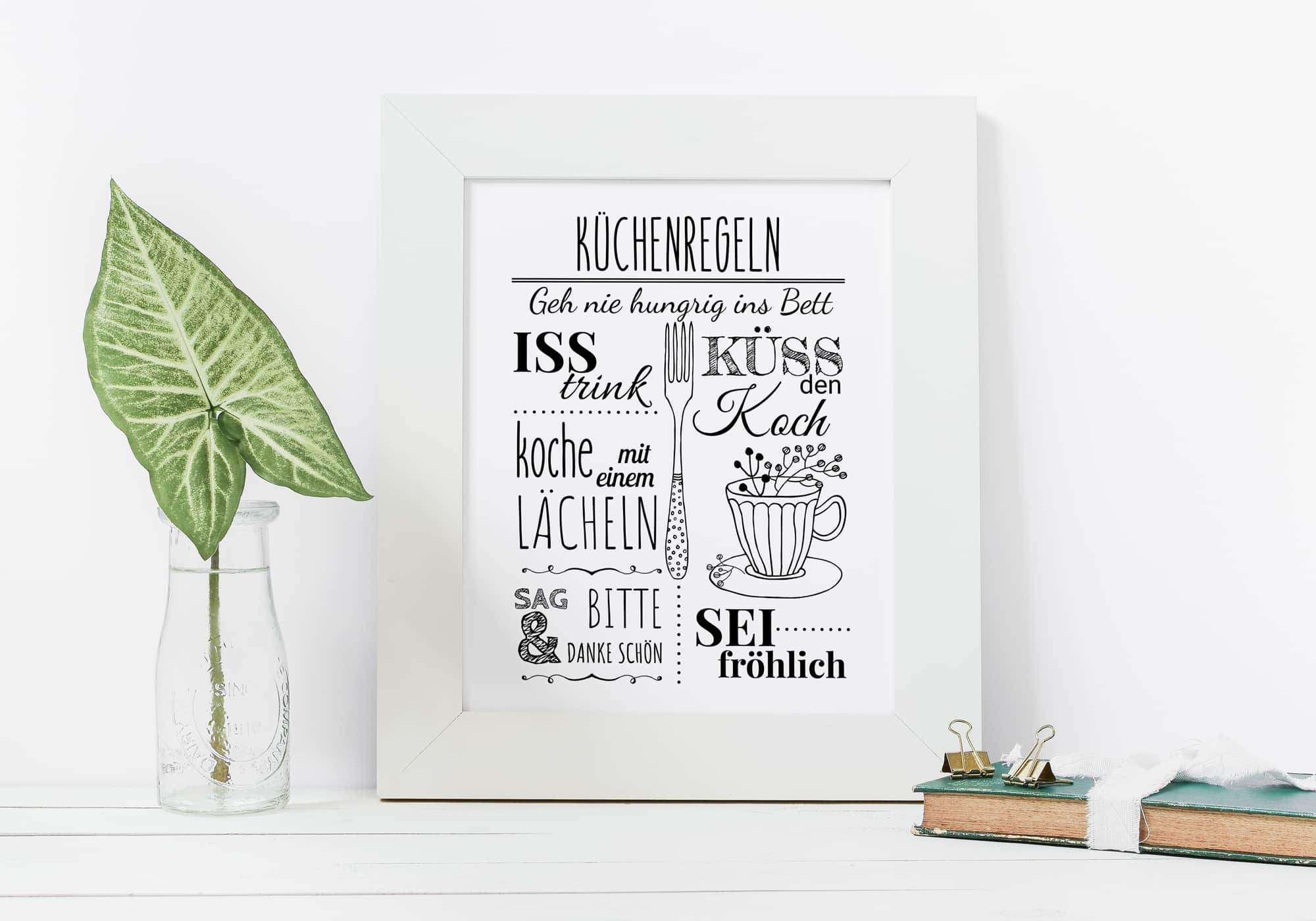 Transform your kitchen into a warm and inviting space with our Kitchen Rules Printable. This charming hand-drawn illustration of kitchen rules is not just decoration; it charmingly reminds of the essential kitchen rules and is a wonderful addition to any kitchen decor. Whether you’re decorating your own kitchen or looking for a thoughtful gift for German friends, this print adds character and warmth to culinary spaces.