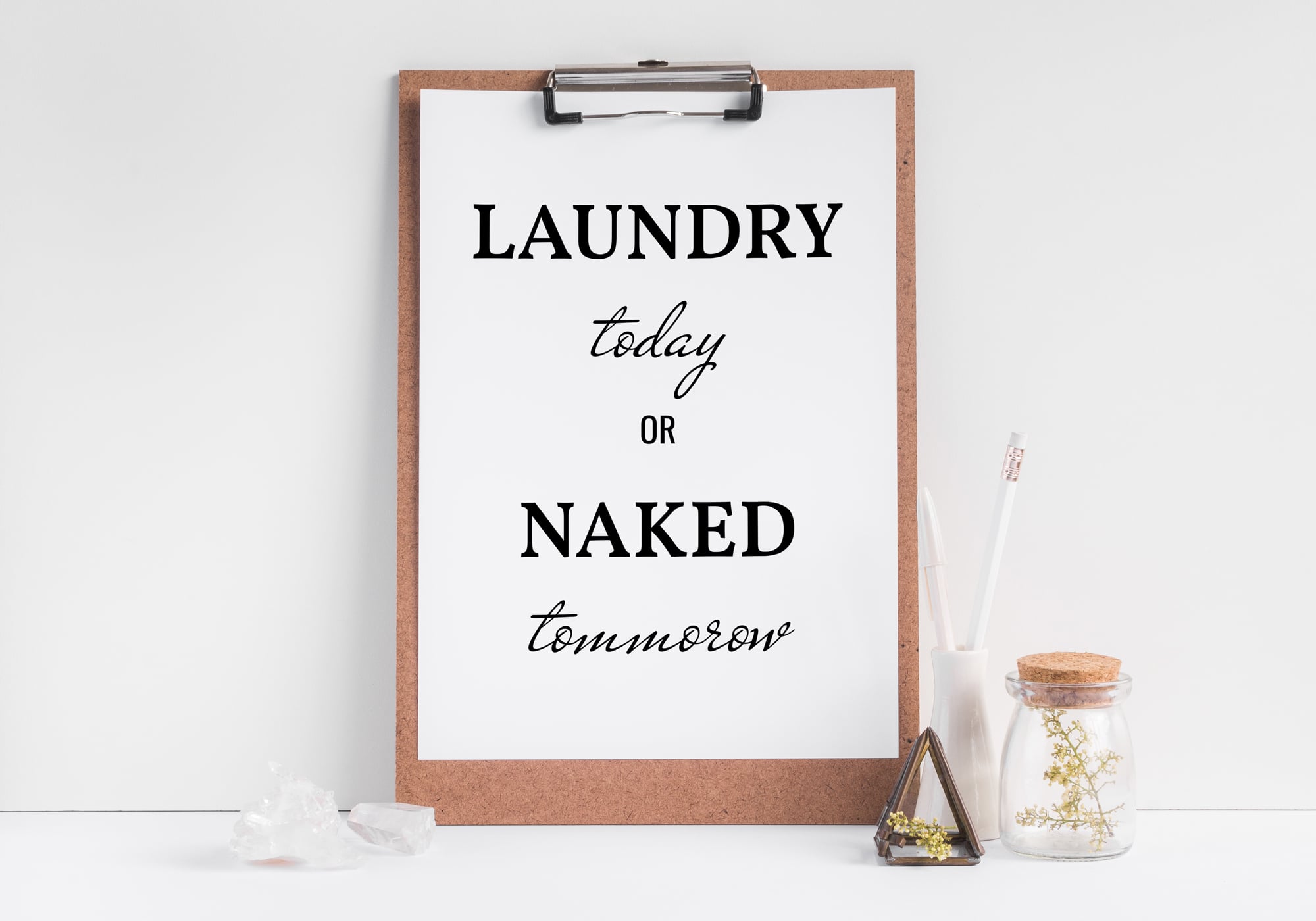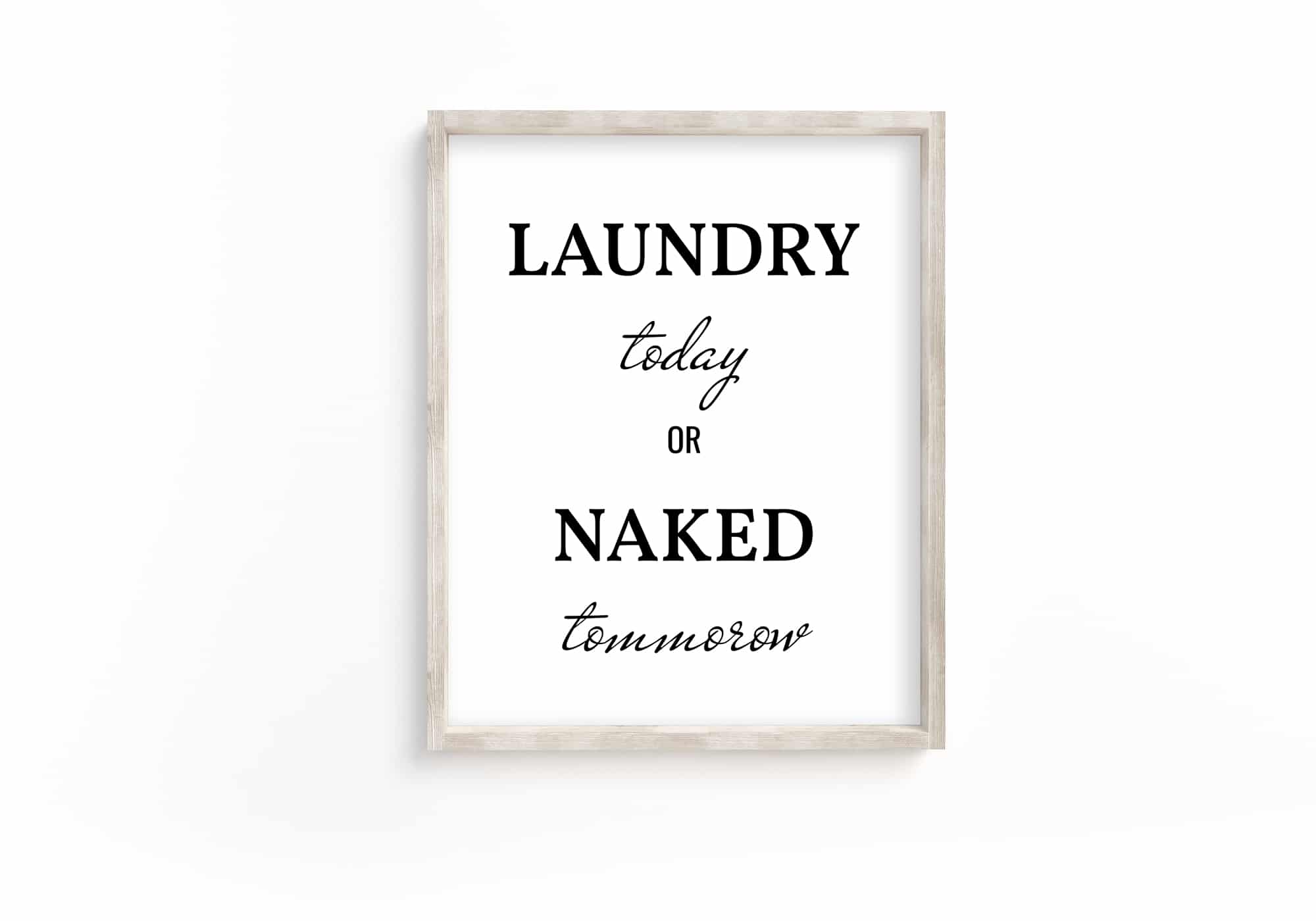 Elevate your laundry room or bathroom with our playful and stylish “Laundry Today Naked Tomorrow” printable art. Perfect for adding a touch of humor and charm to your home, this high-quality digital download is an ideal gift for new homeowners or anyone looking to spruce up their laundry space.