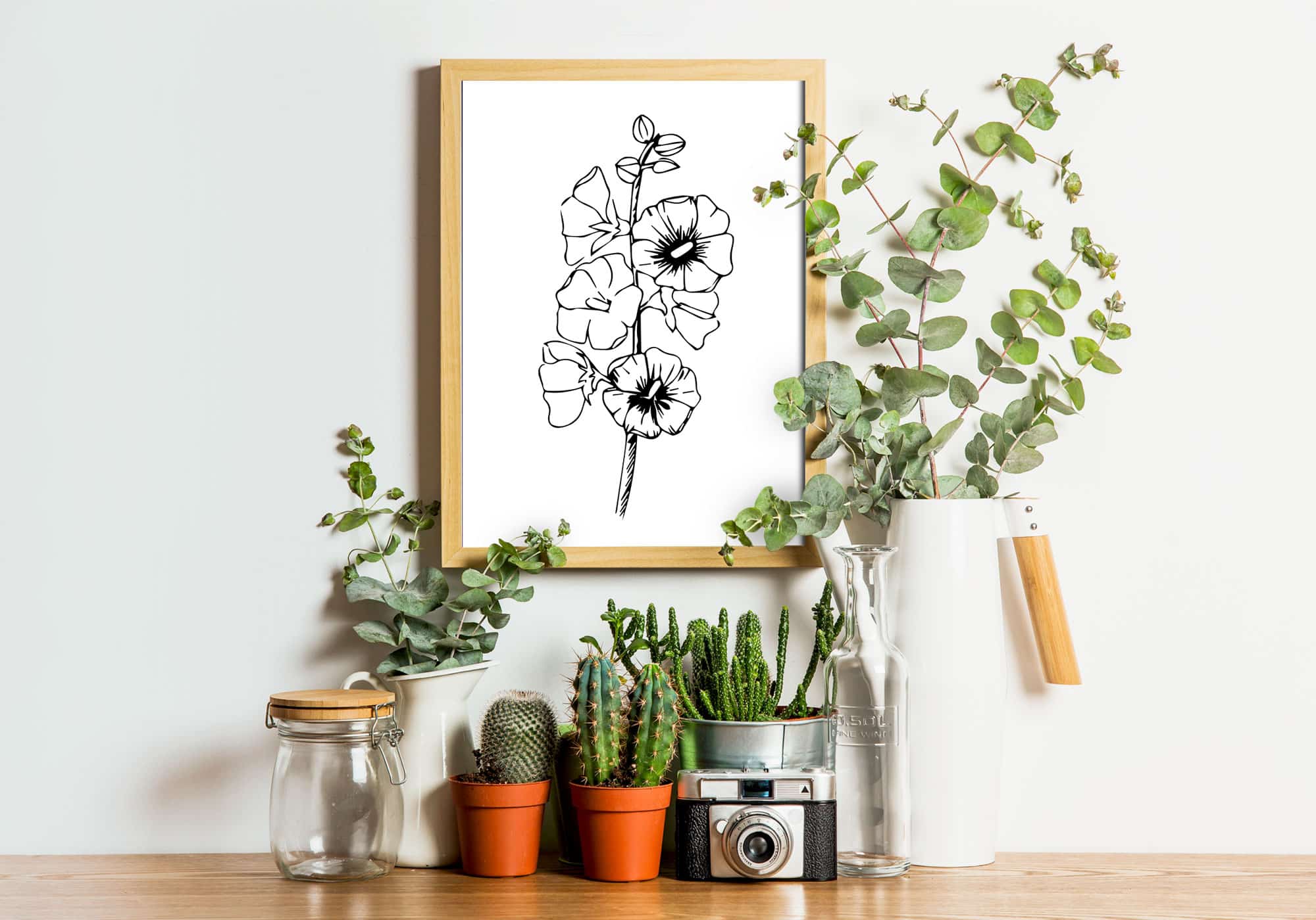 Invite the serene beauty of nature into your home with our Mallow drawing. This Botanical Line Art Print captures the delicate details of wildflowers, offering a simple yet elegant addition to your decor. Perfect for lovers of minimalist botanical art, this downloadable sketch brings a touch of modern sophistication to any space. Elevate your surroundings effortlessly – download now.