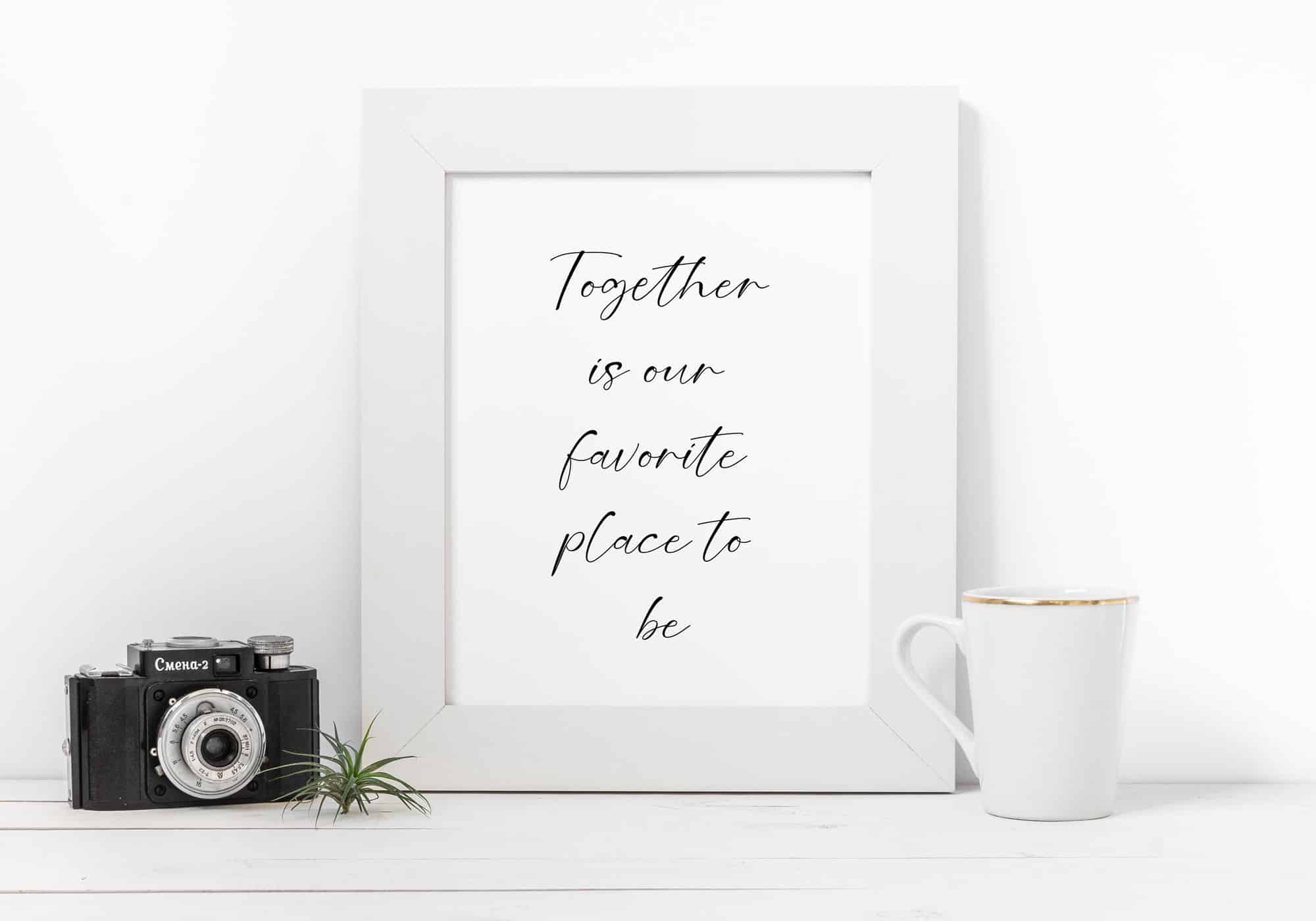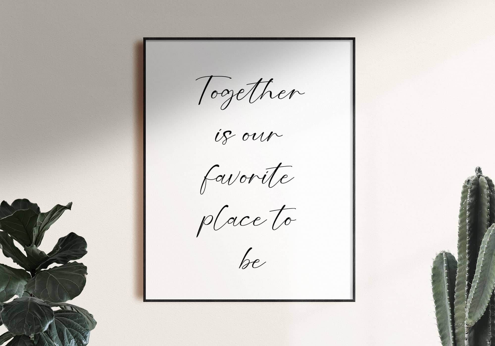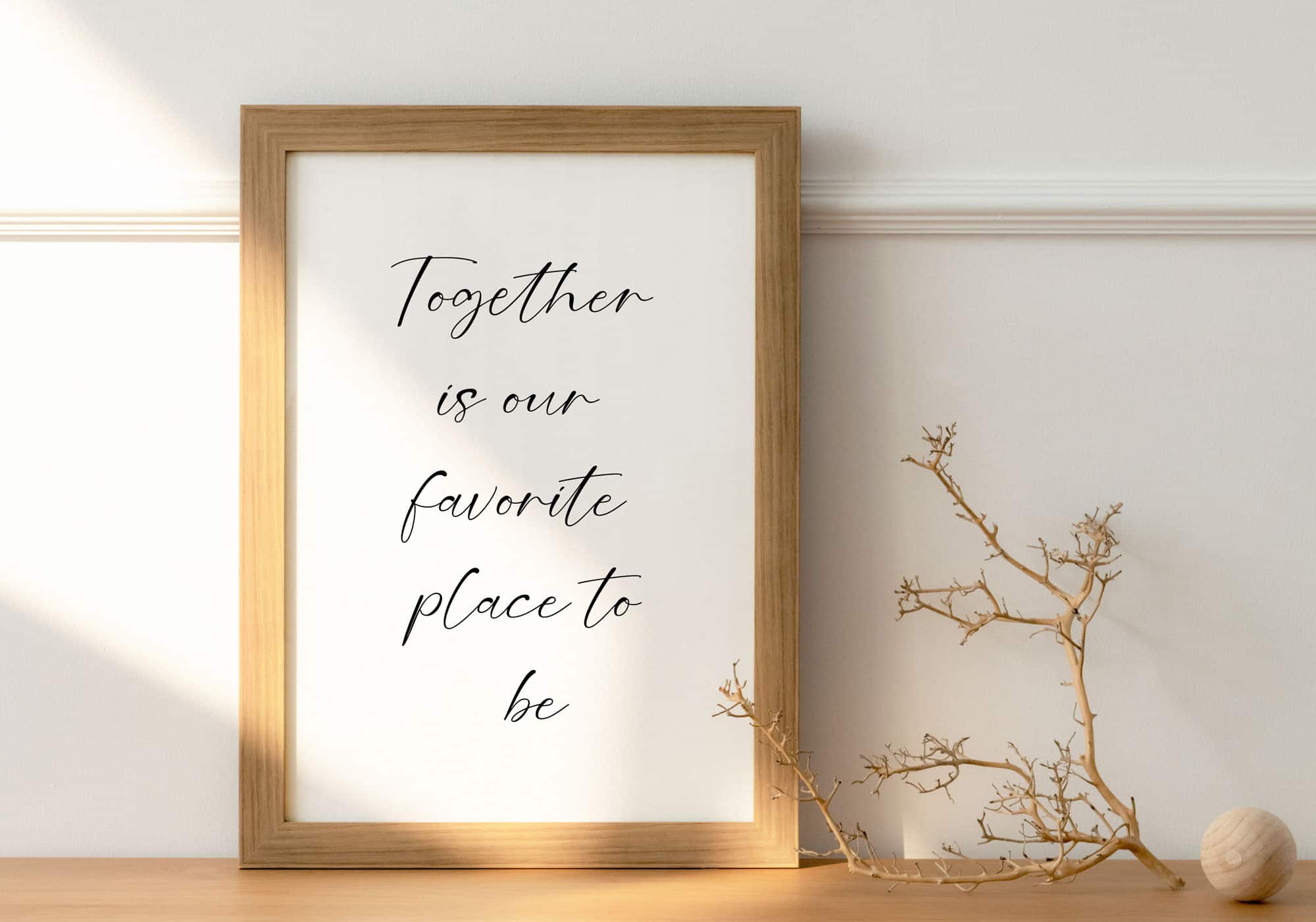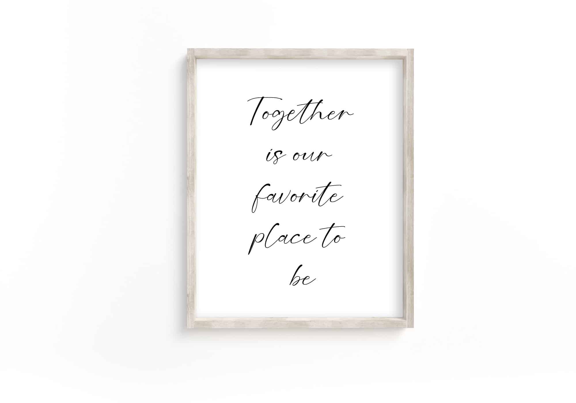 Bring warmth and love into your home with our “Together is Our Favorite Place to Be” printable. This charming home quote adds a touch of modern decor to your living room, perfect for creating a cozy and inviting atmosphere. Ideal for Valentine’s Day or everyday expression of love, this digital download is a beautiful addition to your wall art collection.