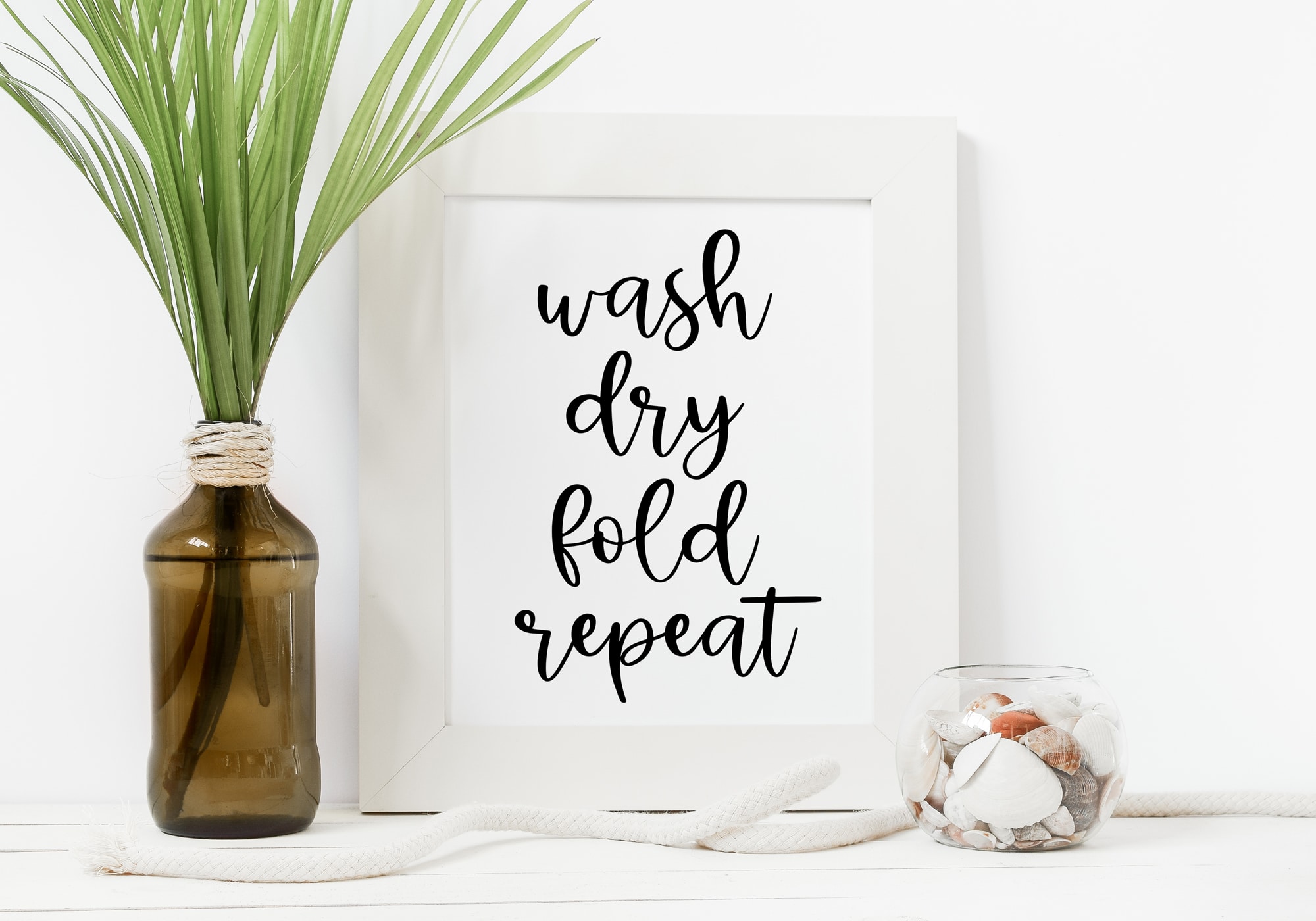 Transform your laundry routine and elevate your home’s aesthetic with our “Wash Dry Fold Repeat” printable wall art. Download today and effortlessly enhance your space!