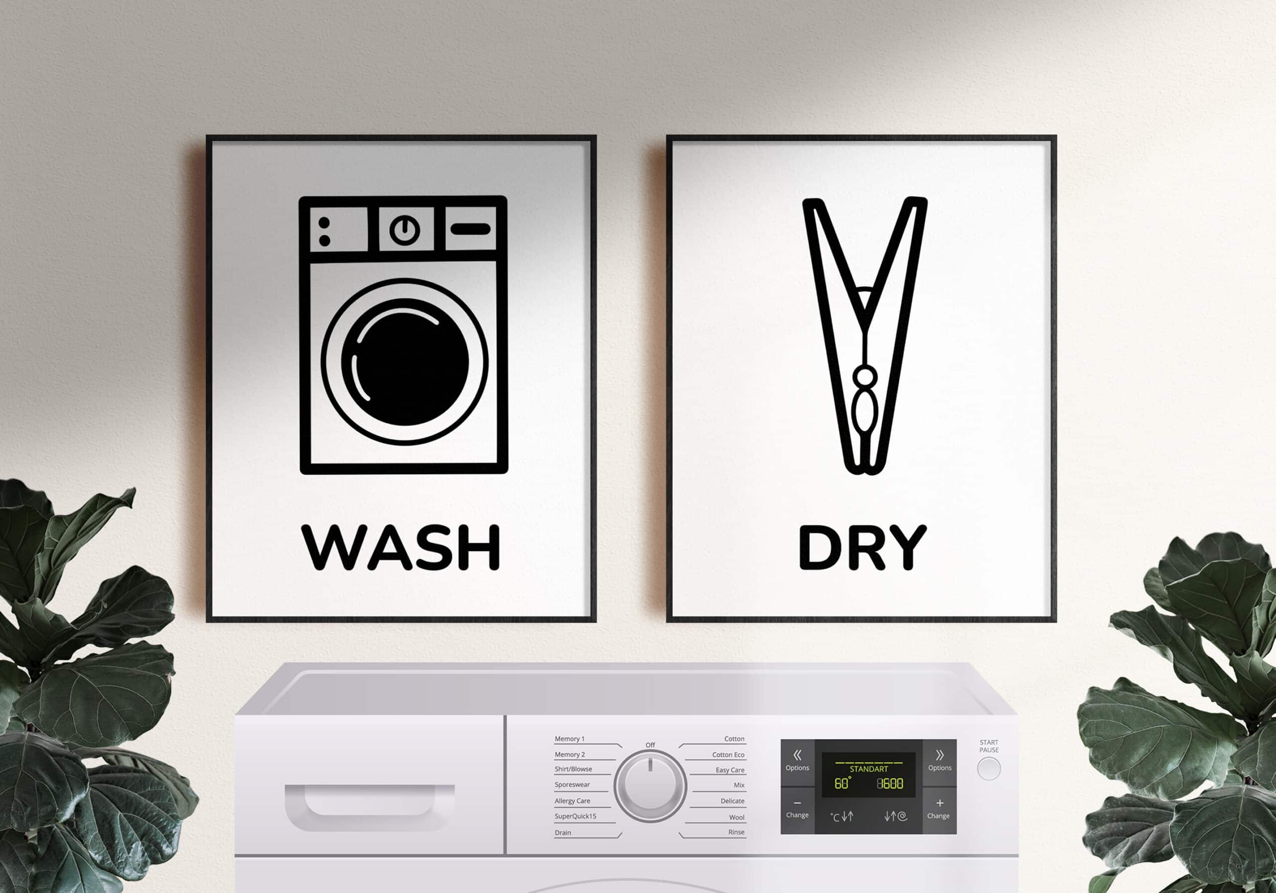 - Laundry Icons Art: Each print features a minimalist laundry icon, enhancing the visual appeal and clarity of your laundry room decor.