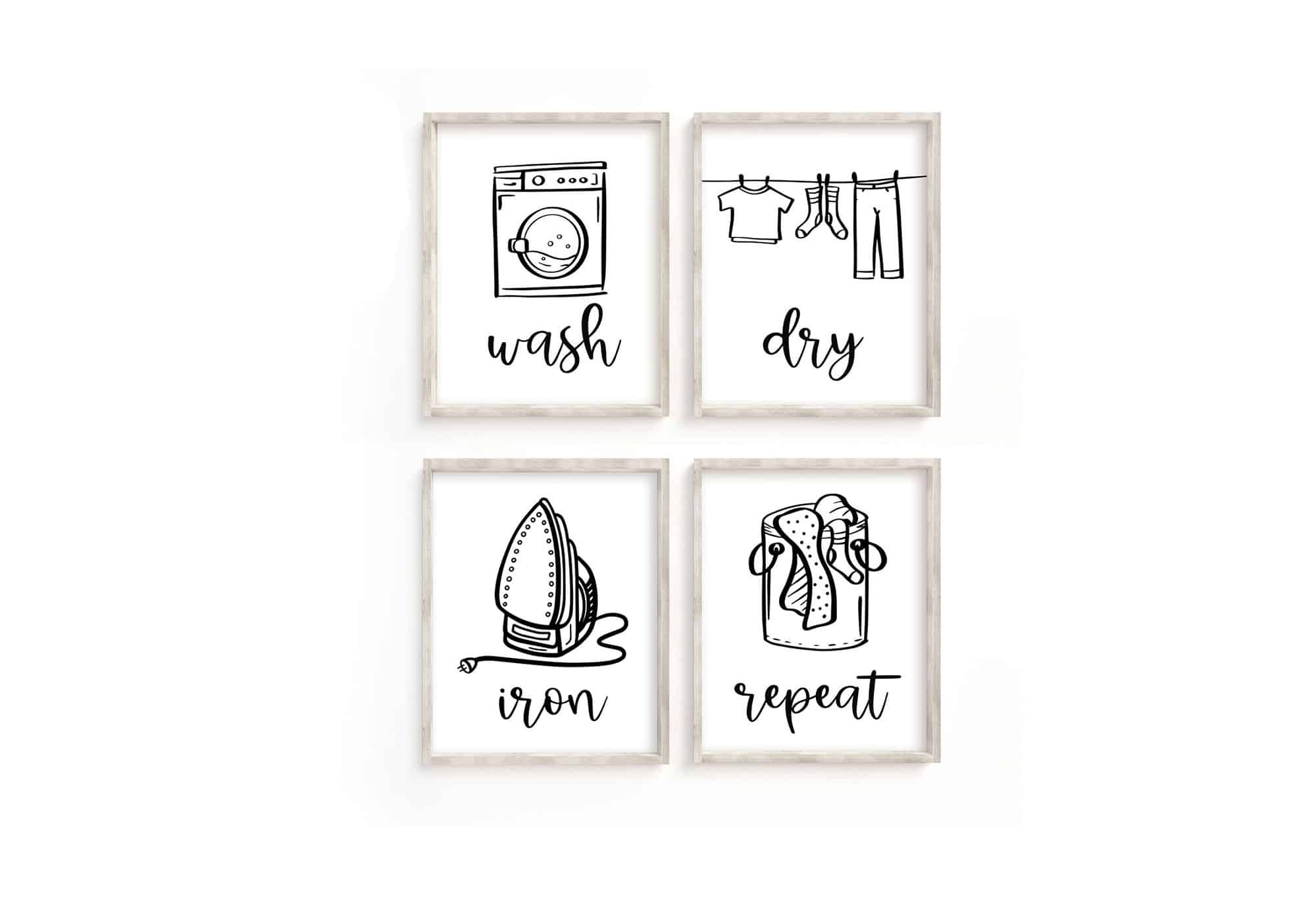 Add a touch of fun and functionality to your laundry or utility room with our “Wash Dry Iron Repeat” set of 4 prints. These charming doodle art designs will brighten up your space, making laundry day a little more enjoyable. Each print captures a different aspect of the laundry process, creating a cohesive and stylish look for your home decor.