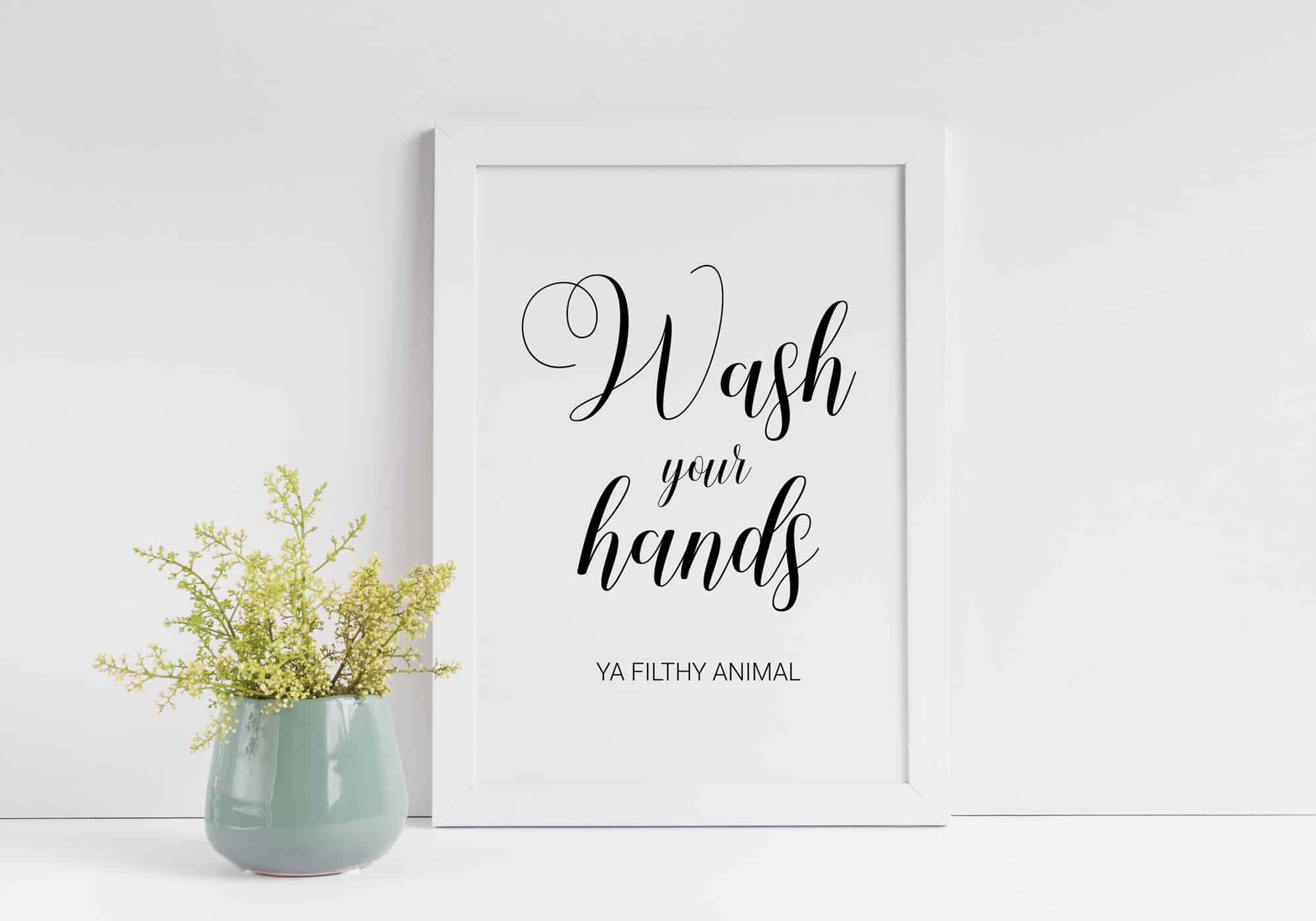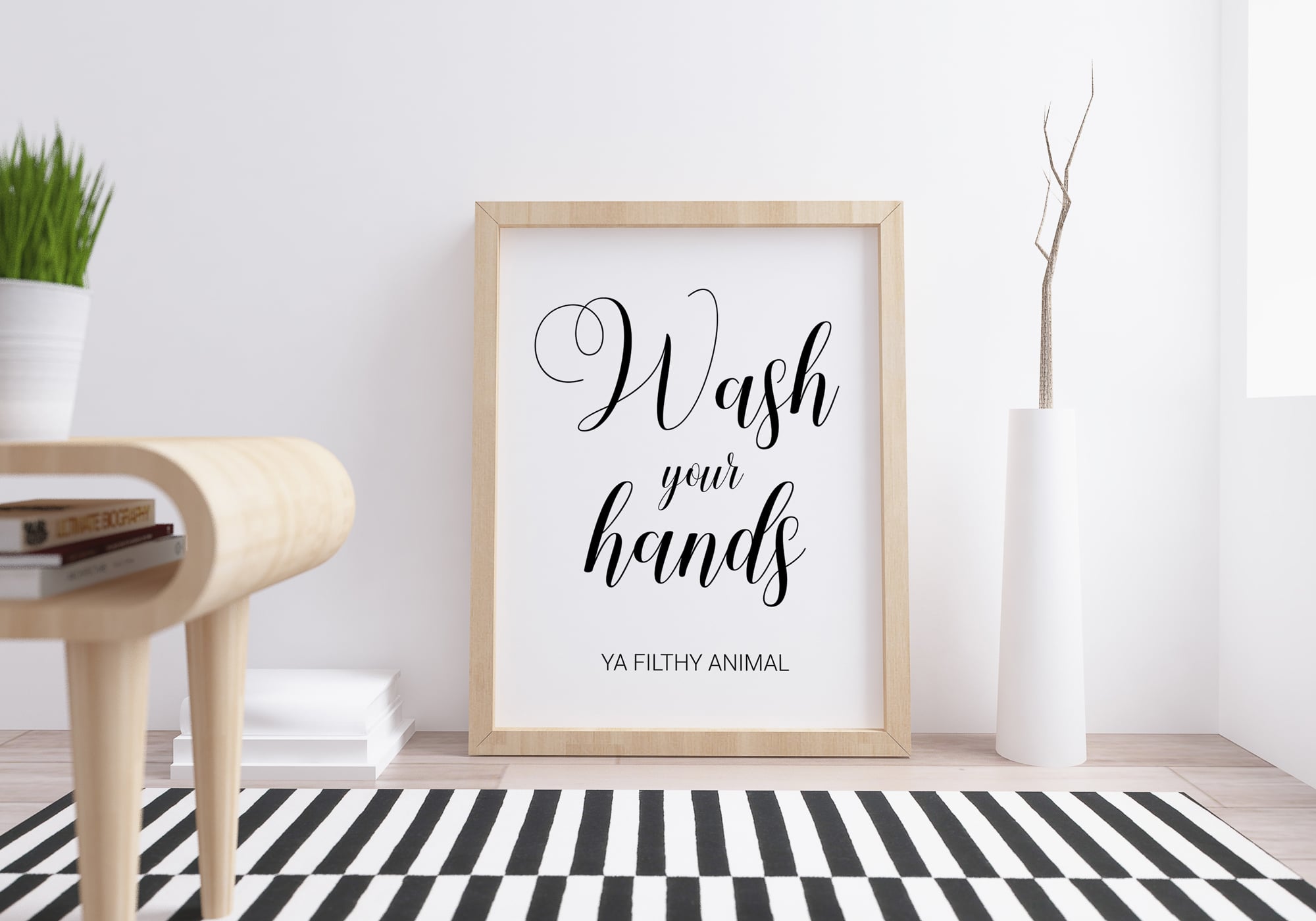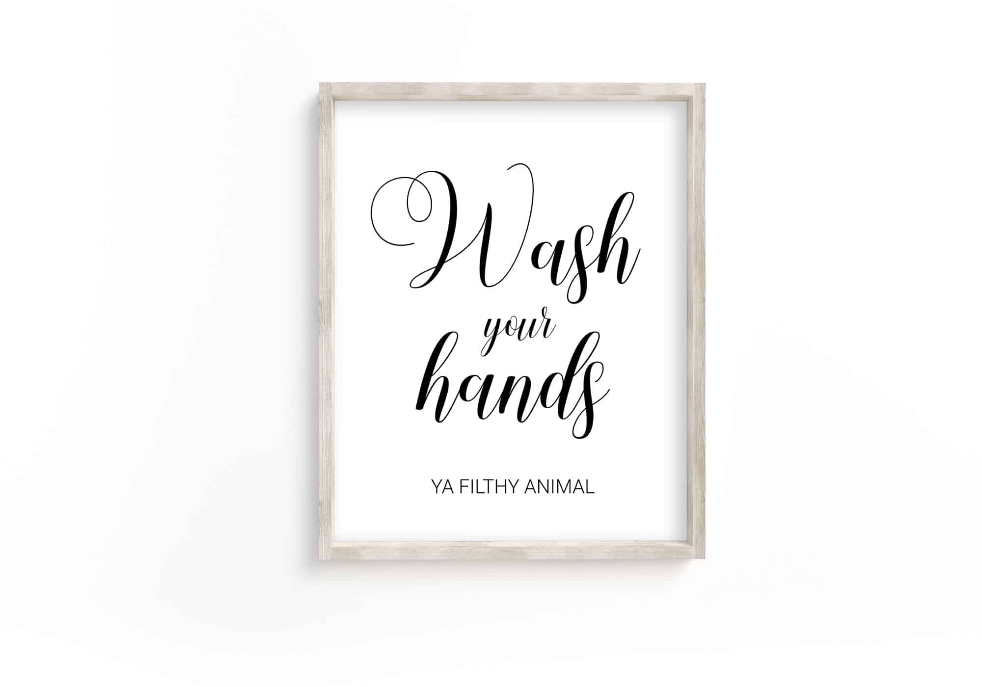 “Wash Your Hands Ya Filthy Animal” PRINTABLE for bathroom, restroom or kitchen.