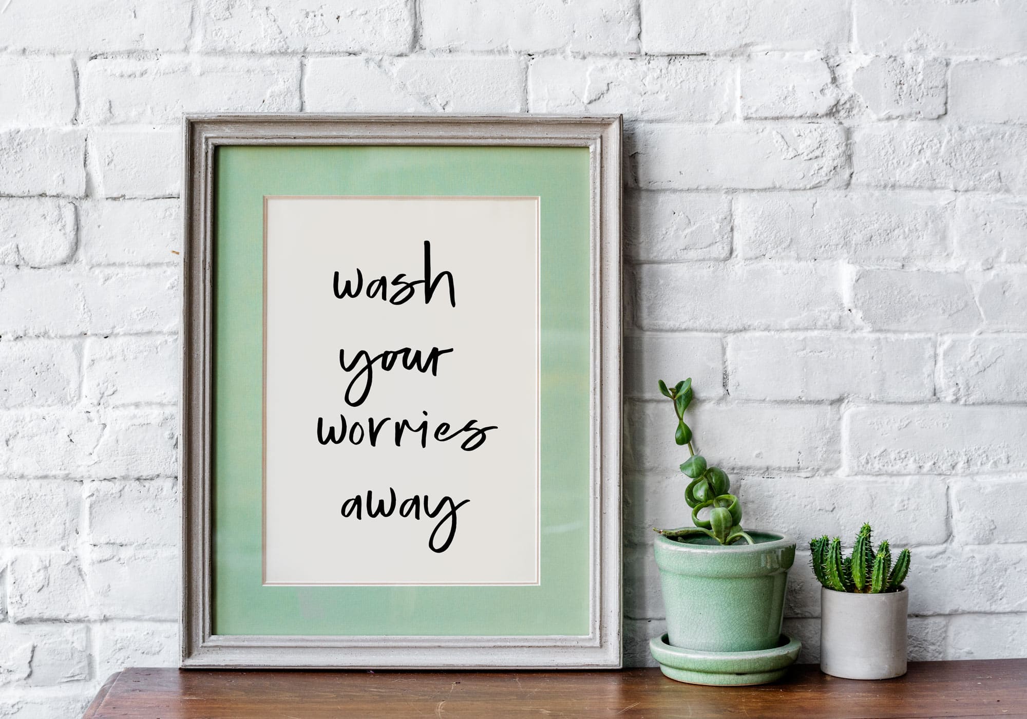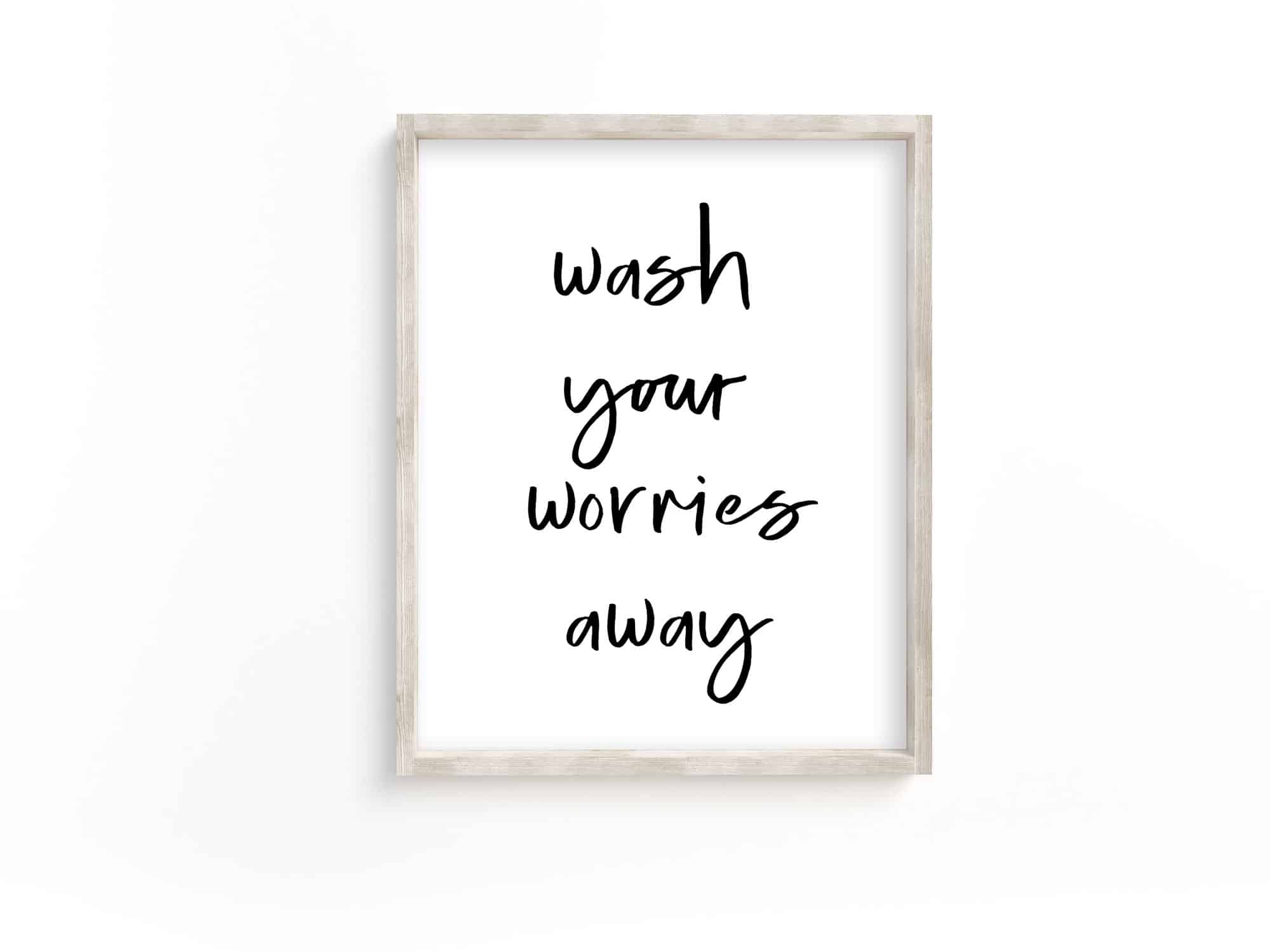 Indulge in tranquility with our “Wash Your Worries Away” bathroom wall art. This serene piece serves as a gentle reminder to unwind and rejuvenate in the comfort of your bathroom sanctuary. With its soothing design and calming message, this artwork is a perfect addition to any bathroom decor. Instantly downloadable, it’s a hassle-free way to infuse your space with relaxation and serenity.
